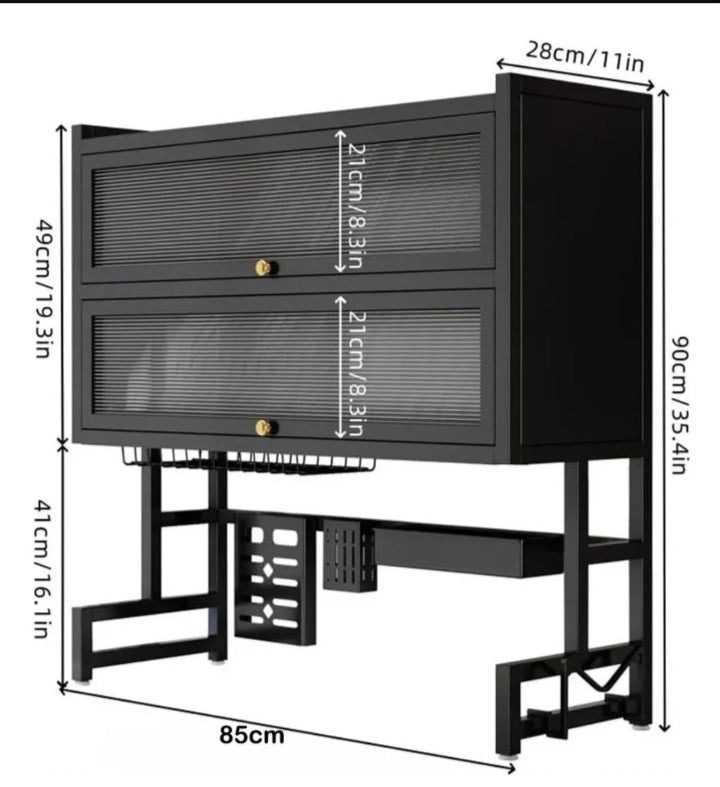 DryLline® – Elegancia, resistencia y protección en tu cocina. Con su acabado cromado de alta durabilidad y su diseño de dos pisos con tapas, mantiene tus platos, vasos y utensilios perfectamente organizados y secos, protegiéndolos del polvo y las moscas. La bandeja recoge el agua y protege tus superficies, combinando estilo, capacidad y practicidad para una cocina más limpia, funcional y segura cada día.